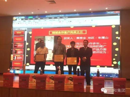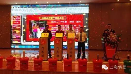 经过多年的努力及开拓,三和产品在六盘水的市场不断扩大,三和优质的产品与良好的服务获得了客户一致好评,润滑油也赢得了良好的市场口碑,为三和润滑油的高速发展奠定了坚实基础,为了答谢六盘水新老顾客对三和品牌的肯定与支持,三和公司在本次活动现场中开展了一系列的优惠活动:组织颁发“精诚合作客户”、“优质合作客户”、“战略合作客户”荣誉奖项,对长期支持三和品牌的客户进行表彰感谢。